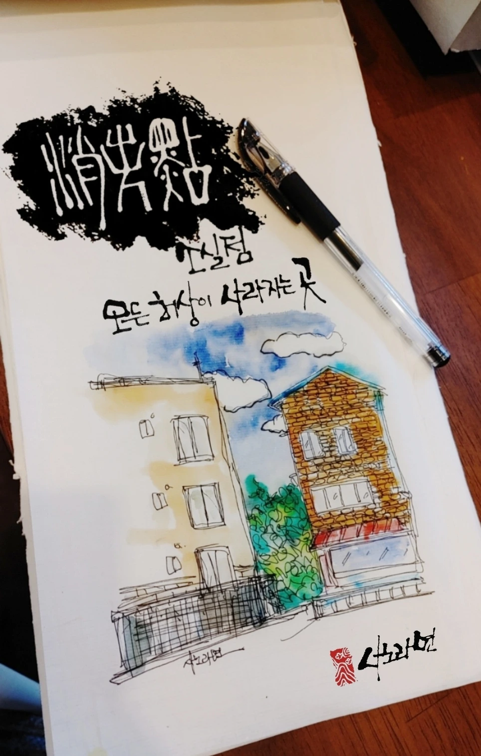 사노라면의 붓 끝에 시를 묻혀 캘리 한 조각