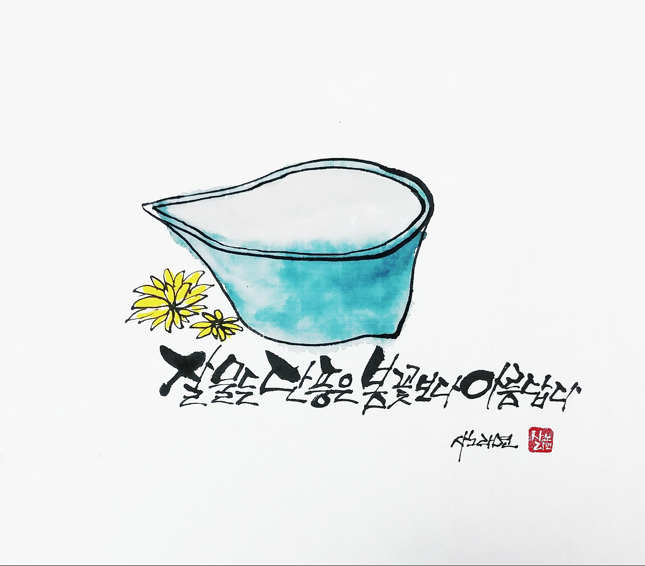 사노라면의 붓끝에 시를묻혀 캘리한조각