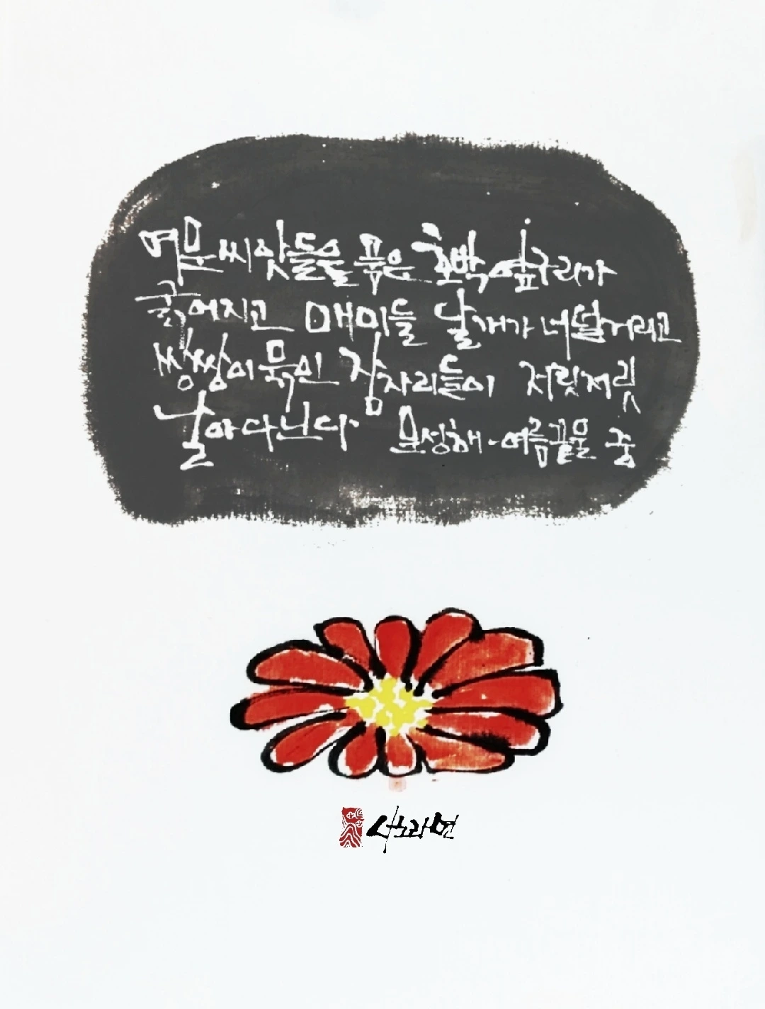 붓 끝에 문성해님의 '여름 끝물' 한 조각을 묻히고 붉은 백일홍 한 송이 얹어 봅니다.