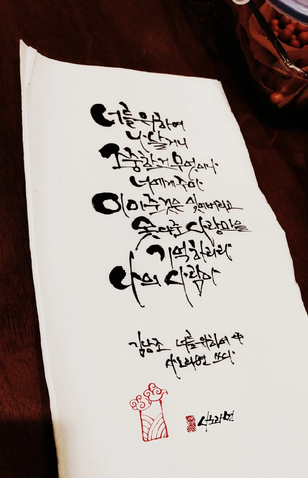 사노라면의 붓 끝에 시를 묻혀 캘리 한 조각