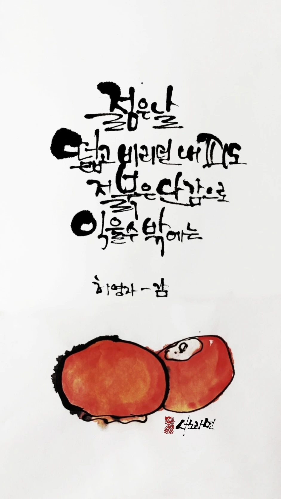 감 한 알 베어 물고 허영자 님의 감을 그려봅니다.