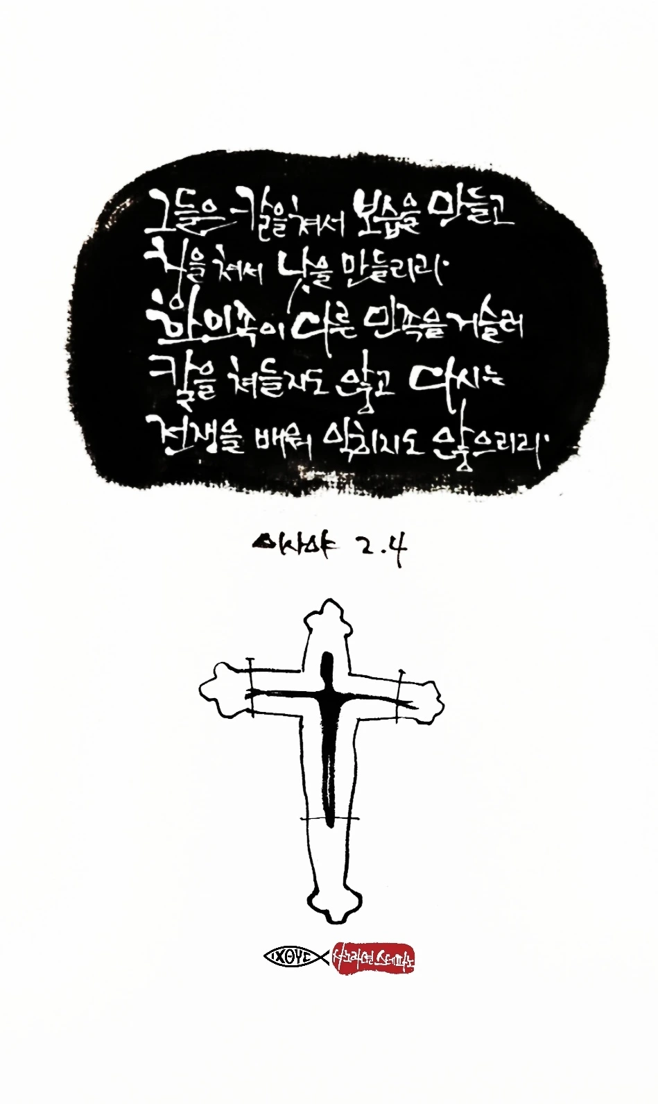 그러면 그들은 칼을 쳐서 보습을 만들고 창을 쳐서 낫을 만들리라.