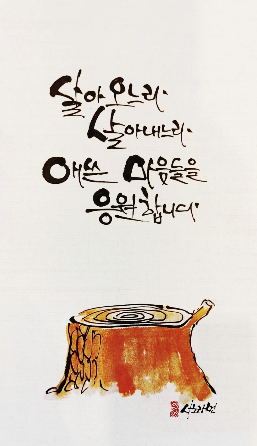 사노라면의 붓 끝에 시를 묻혀 캘리 한 조각