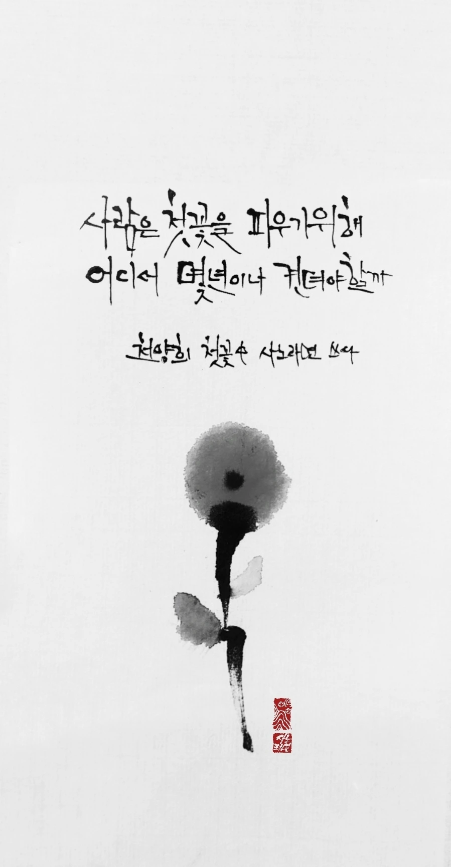 사노라면의 붓 끝에 시를 묻혀 캘리 한 조각