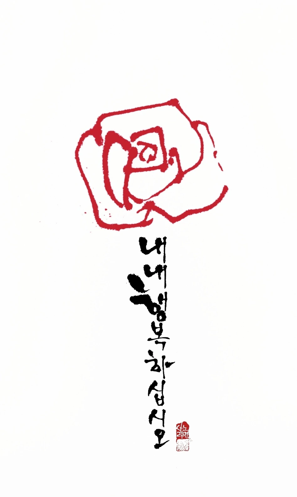 눈물 속에 피워내진 않았지만 붓 끝에 올려 전해드려 보니 기쁨 한 송이 받으시고 내내 행복하십시오.