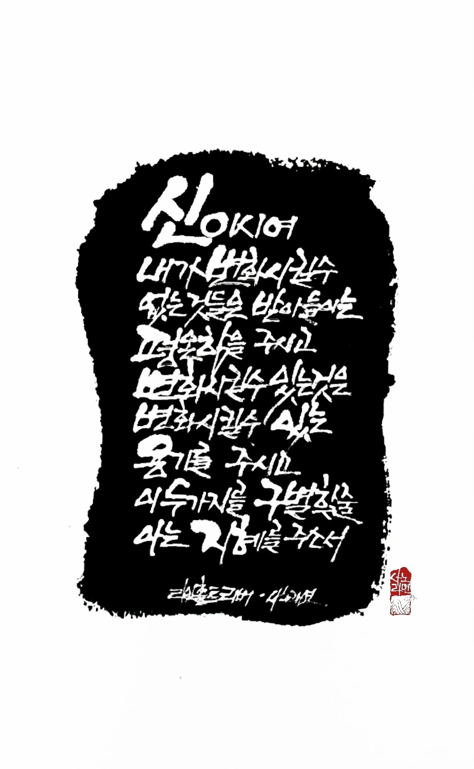 미국의 신학자 라인홀트 니버의 글로 알려지는 기도문입니다. 여러 형태로, 다양하게 수정된 글로 알려지고 있더군요.