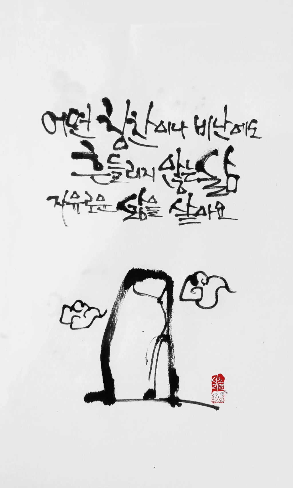 사노라면의 붓 끝에 시를 묻혀 캘리 한 조각