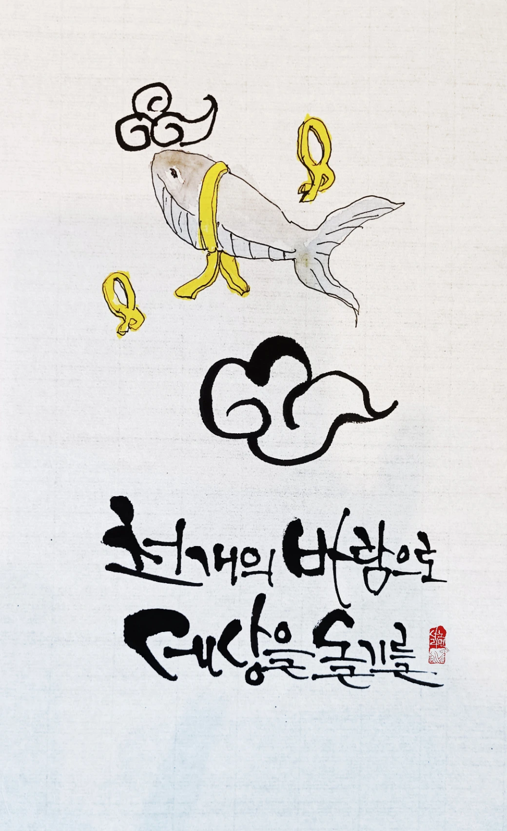 사노라면의 붓 끝에 시를 묻혀 캘리 한 조각