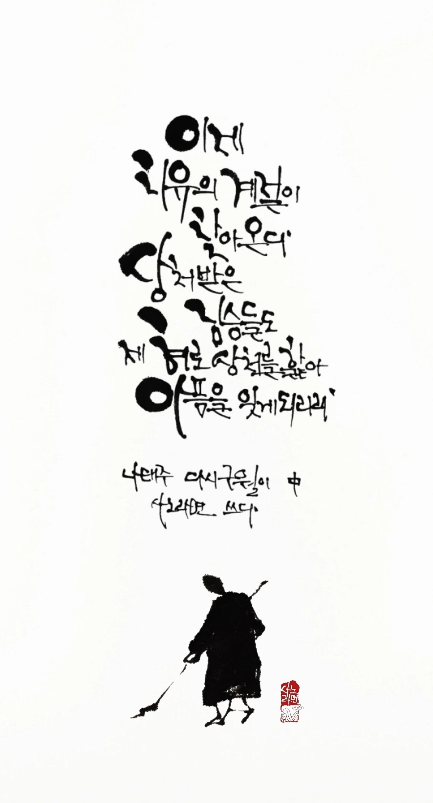 사노라면의 붓 끝에 시를 묻혀 캘리 한 조각