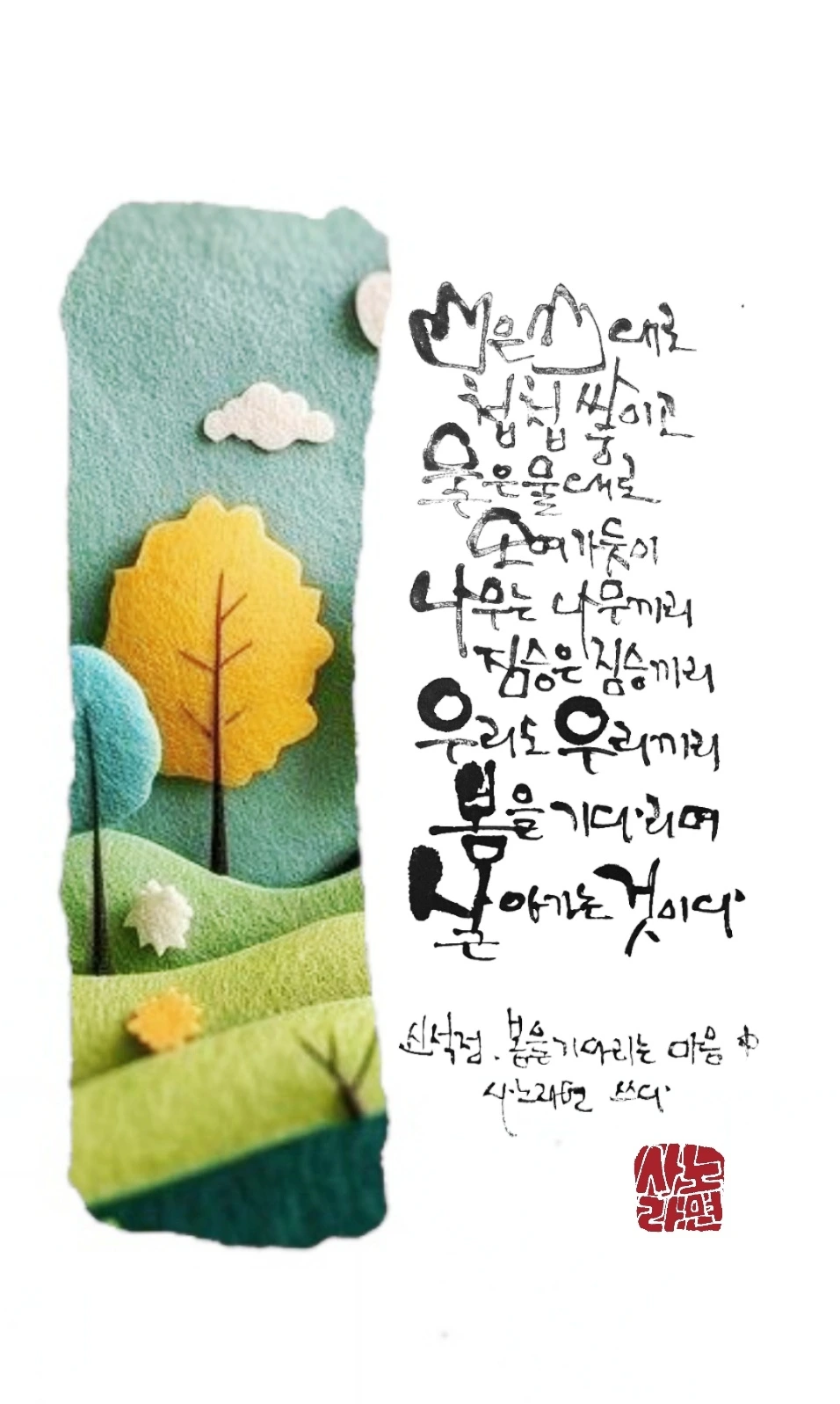 사노라면의 붓 끝에 시를 묻혀 캘리 한 조각