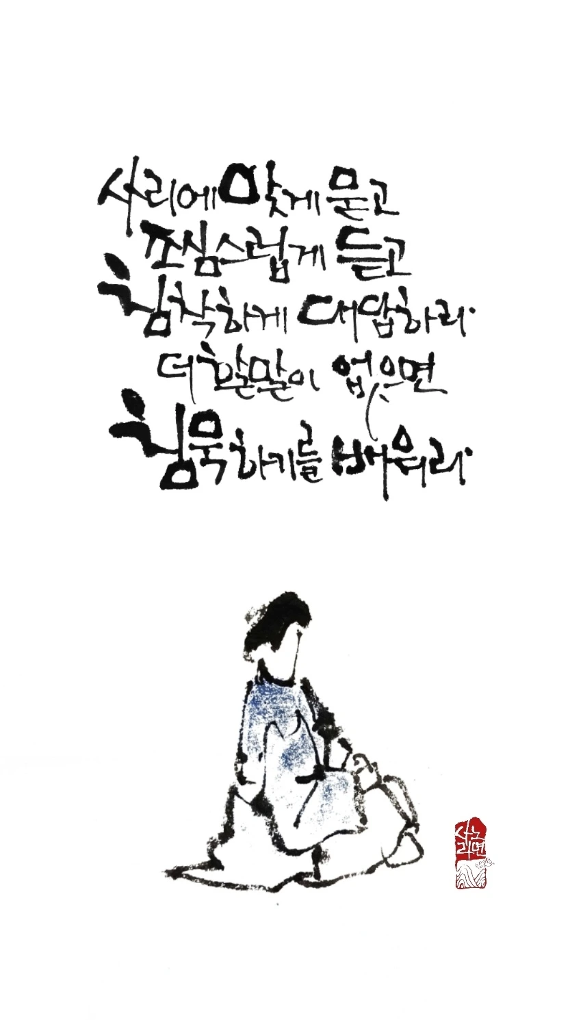 사노라면의 붓 끝에 시를 묻혀 캘리 한 조각