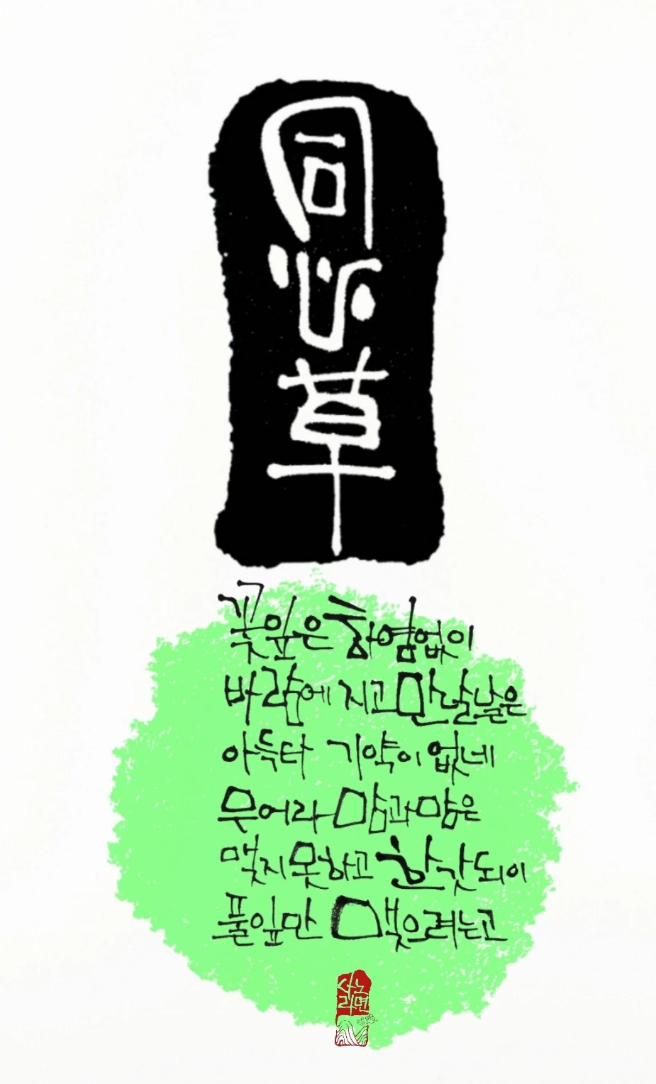 사노라면의 붓 끝에 시를 묻혀 캘리 한 조각