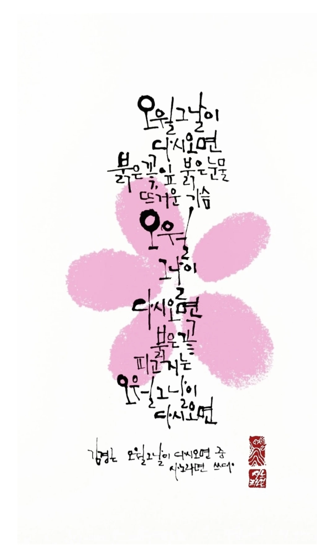 사노라면의 붓 끝에 시를 묻혀 캘리 한 조각