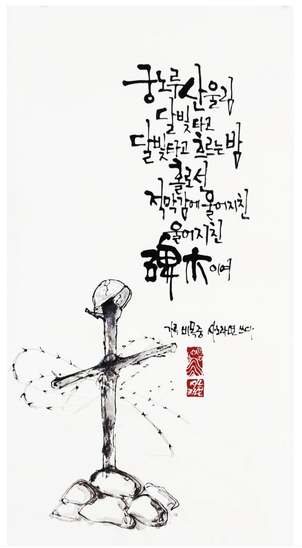 사노라면의 붓 끝에 시를 묻혀 캘리 한 조각