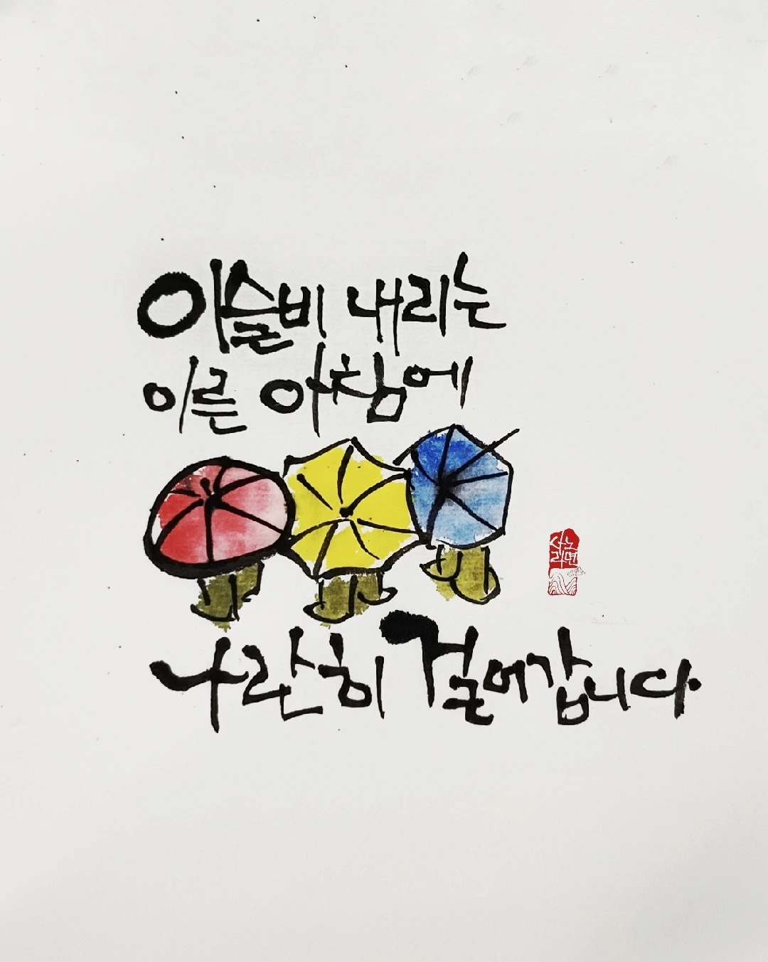 그래도 우산이 마주 보고 도란도란 걷는 아이들 등하교 시간은 여전히 귀여운 모습들이 흐믓합니다.