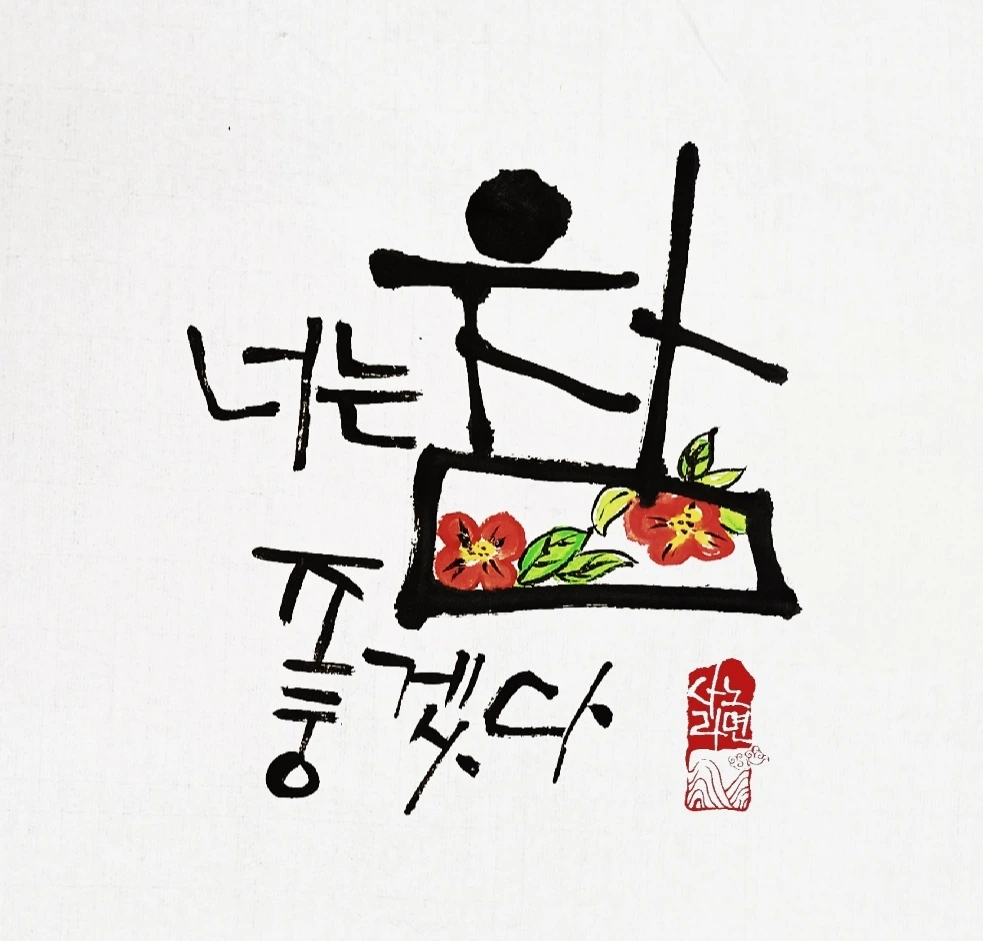 사노라면의 붓 끝에 시를 묻혀 캘리 한 조각