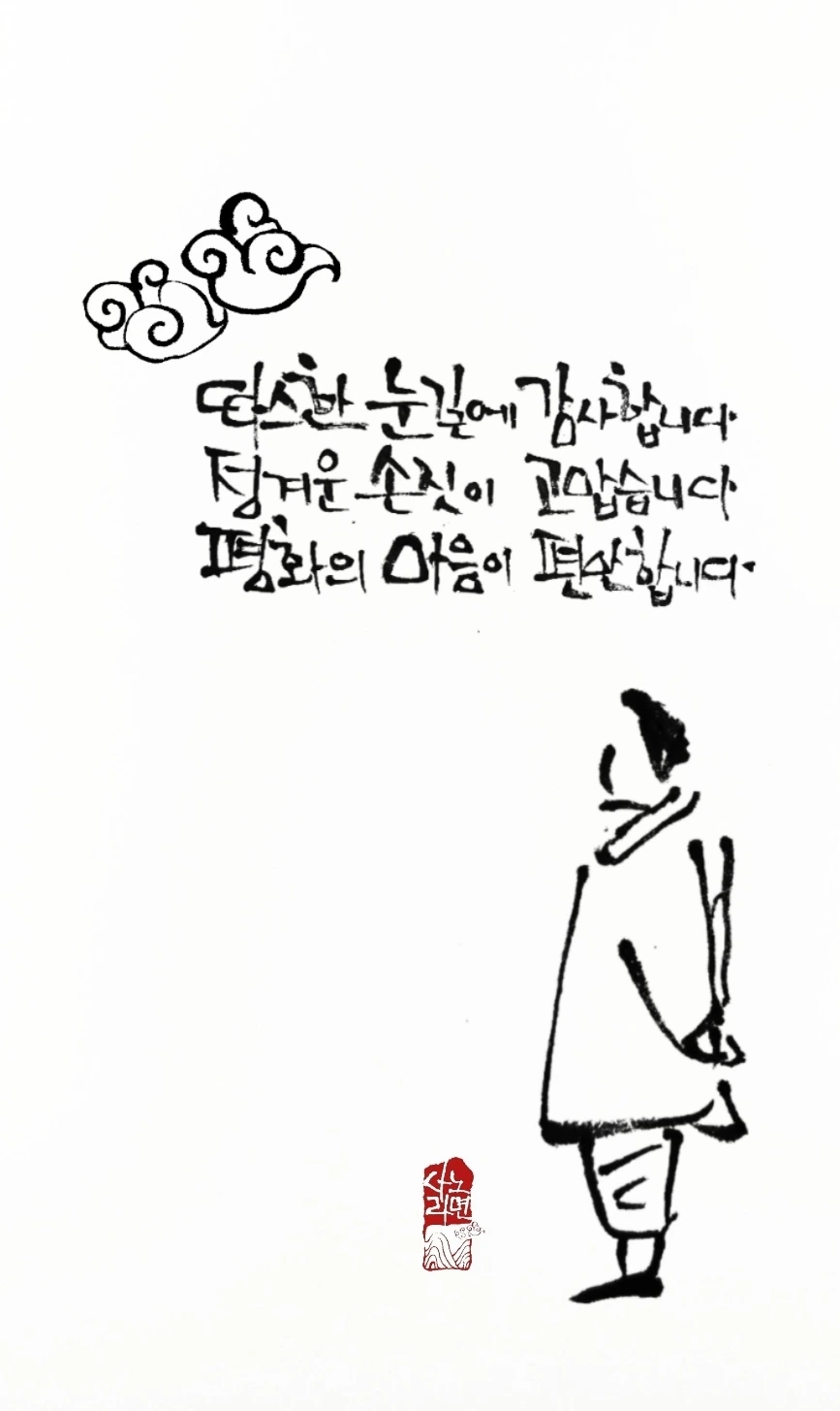 사노라면의 붓 끝에 시를 묻혀 캘리 한 조각
