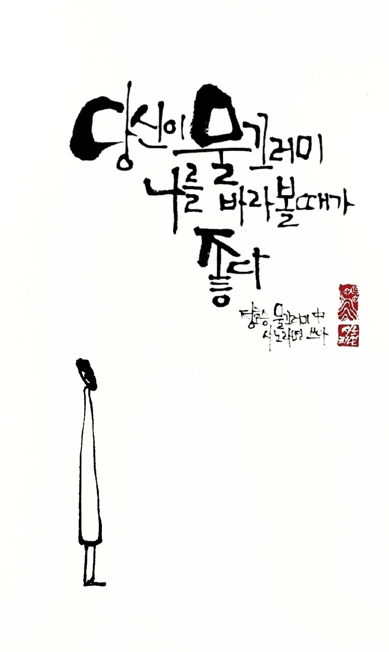 사노라면의 붓 끝에 시를 묻혀 캘리 한 조각