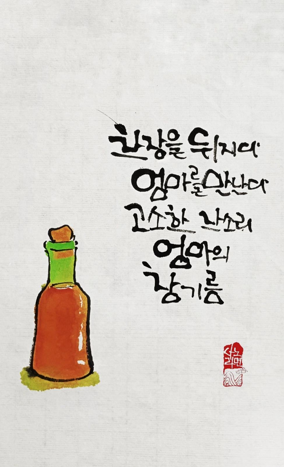 연초록 소주병에 반쯤 남은 참기름 속