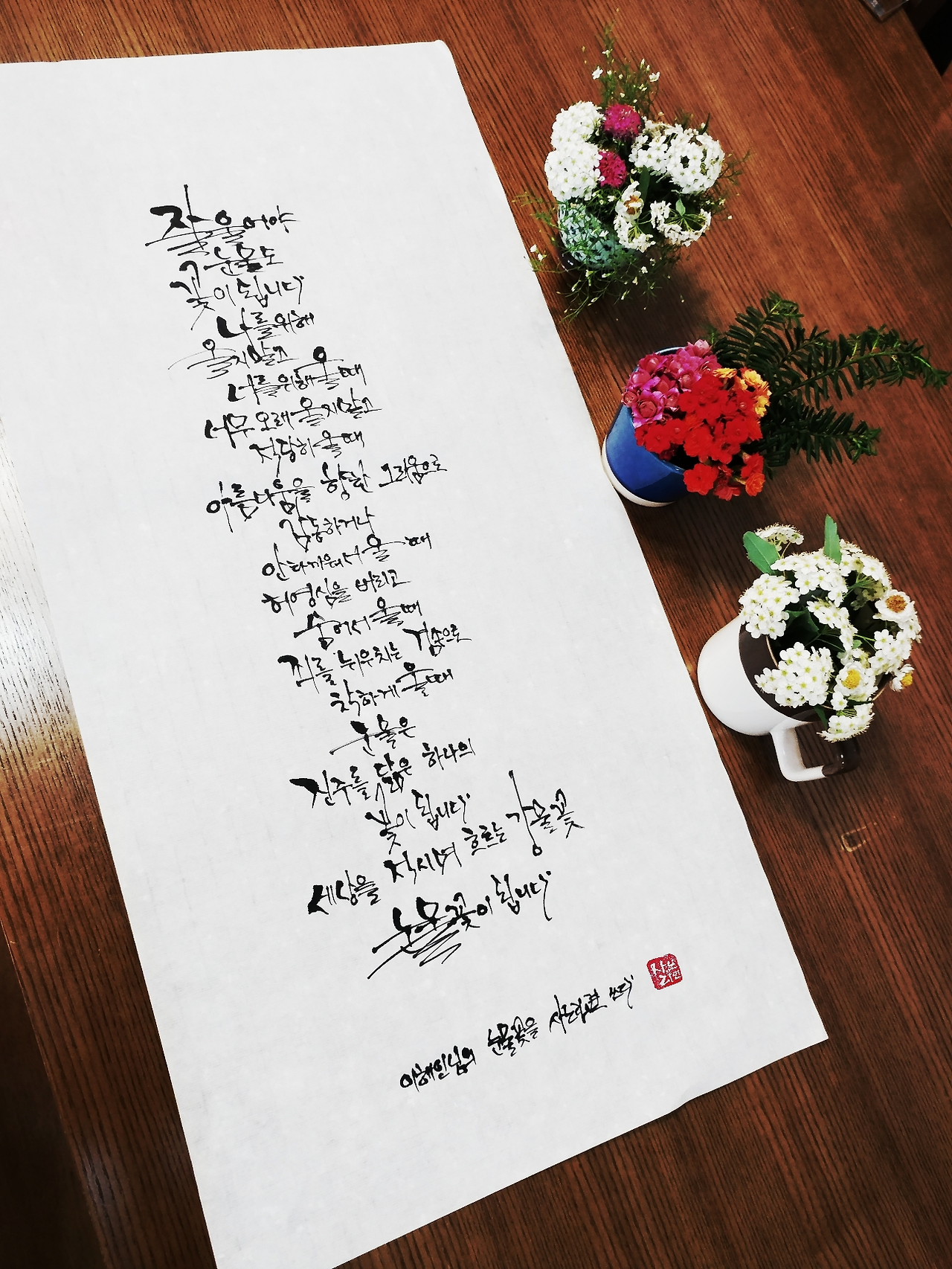 사노라면의 붓끝에 시를묻혀 캘리한조각