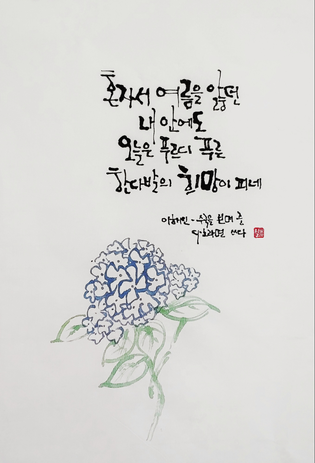 그런 시간에 수국 한 송이 그려보며