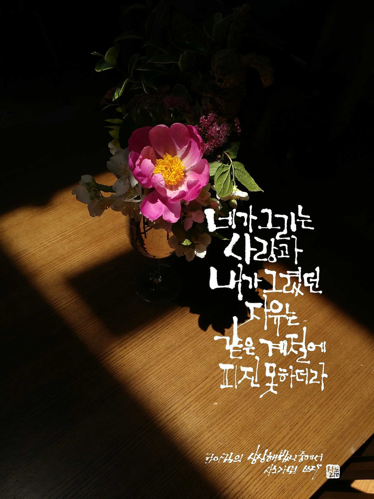 사노라면의 붓끝에 시를묻혀 캘리한조각