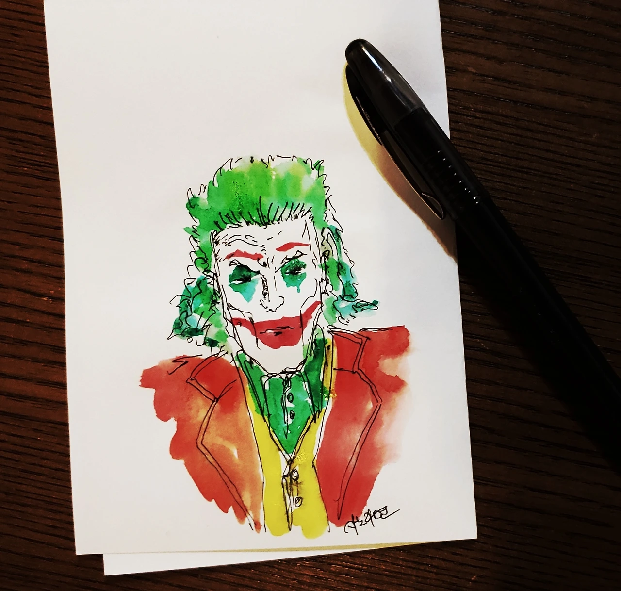 뭔가 2%의 아쉬움이 남지만, 그 간의 DC영화를 생각하면 성공적입니다. 보고 들어온 밤, 강렬한 색채를 기억하며 조커를 그려봅니다.