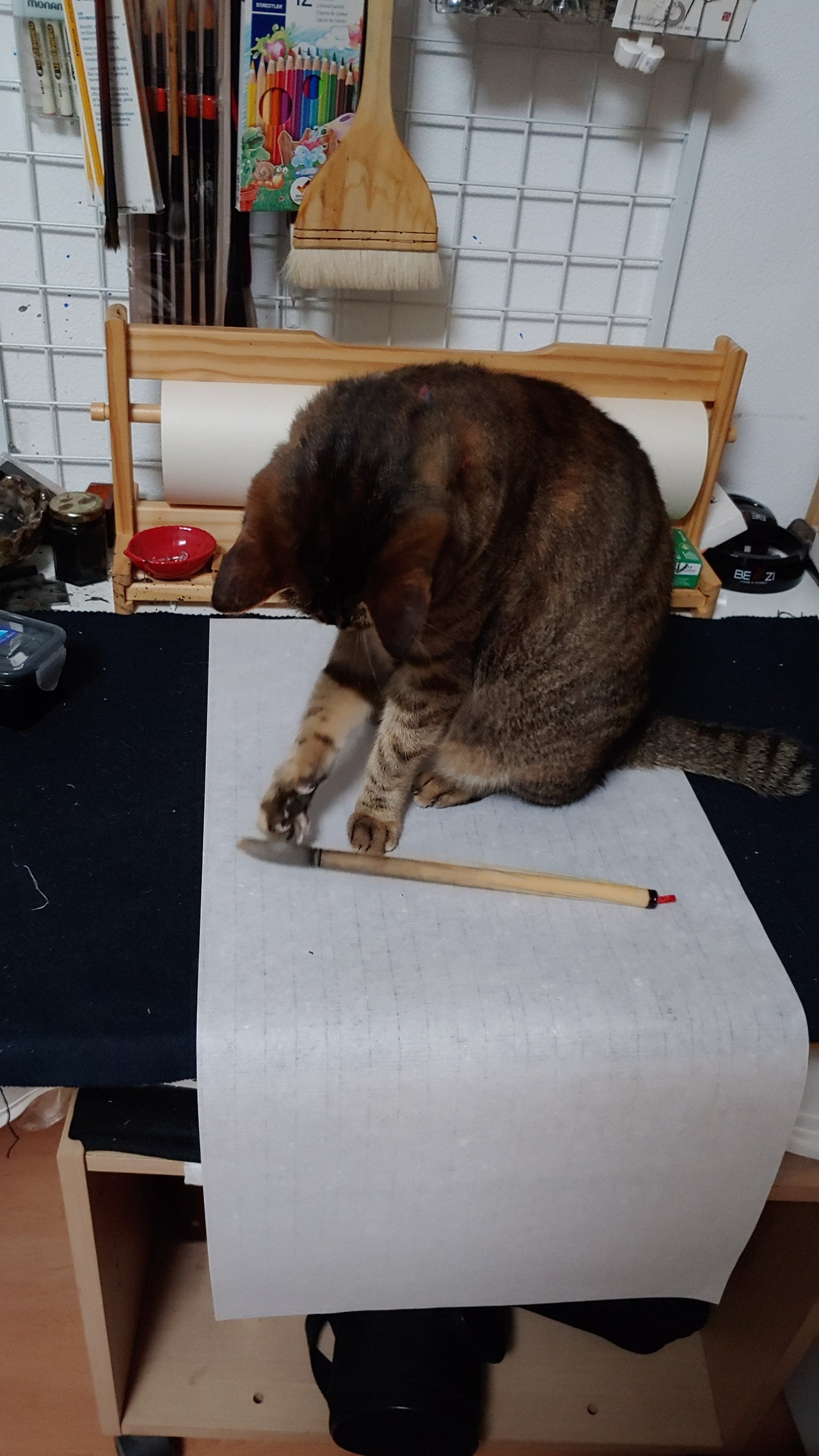 오늘은 오전에 운동 좀 다녀오고, 오후에 짐 정리 좀 하다가 글 좀 쓰려고 화선지를 펴니 이 녀석이 냉큼 올라와 방해를 합니다.