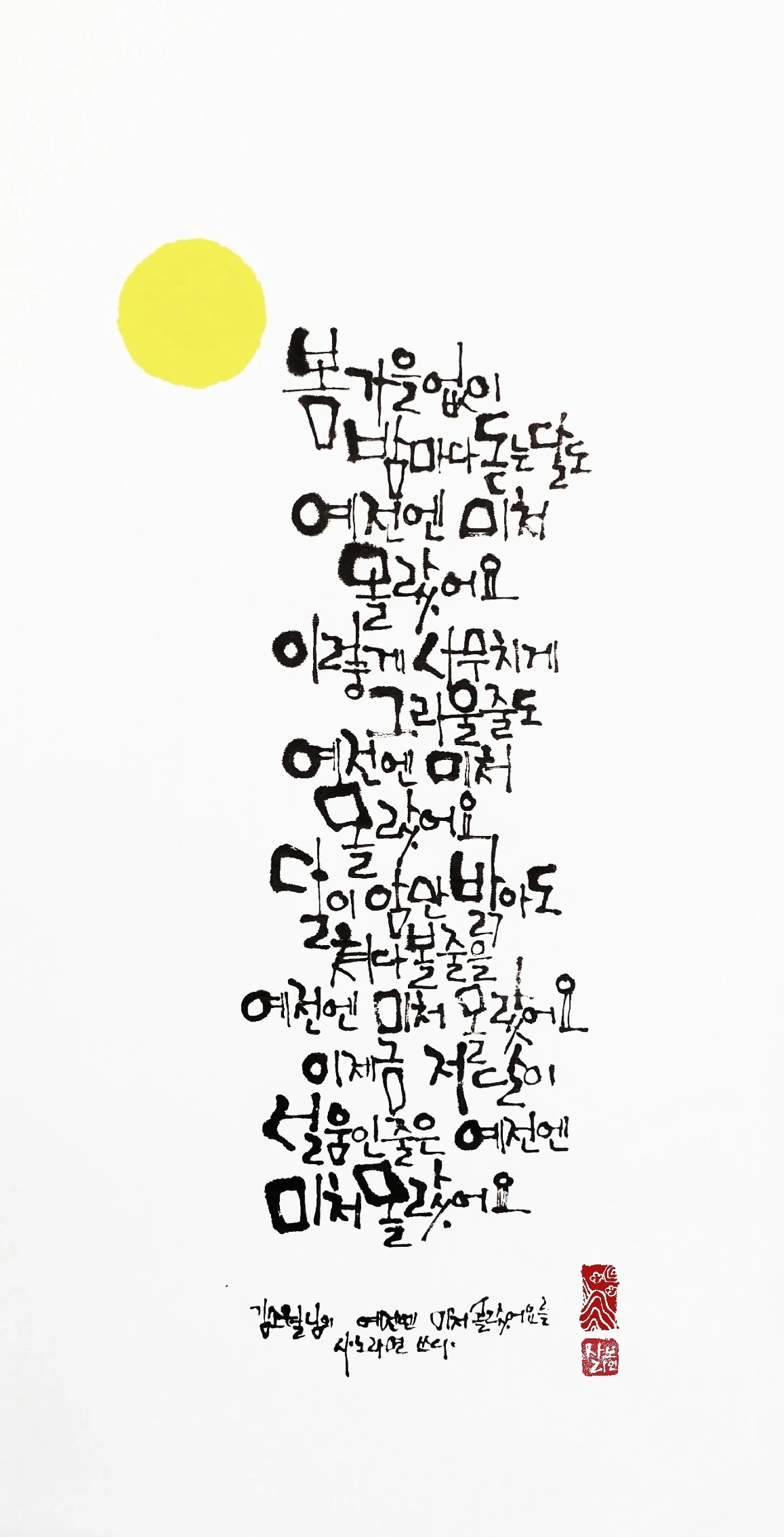 사노라면의 붓끝에 시를 묻혀 캘리한조각