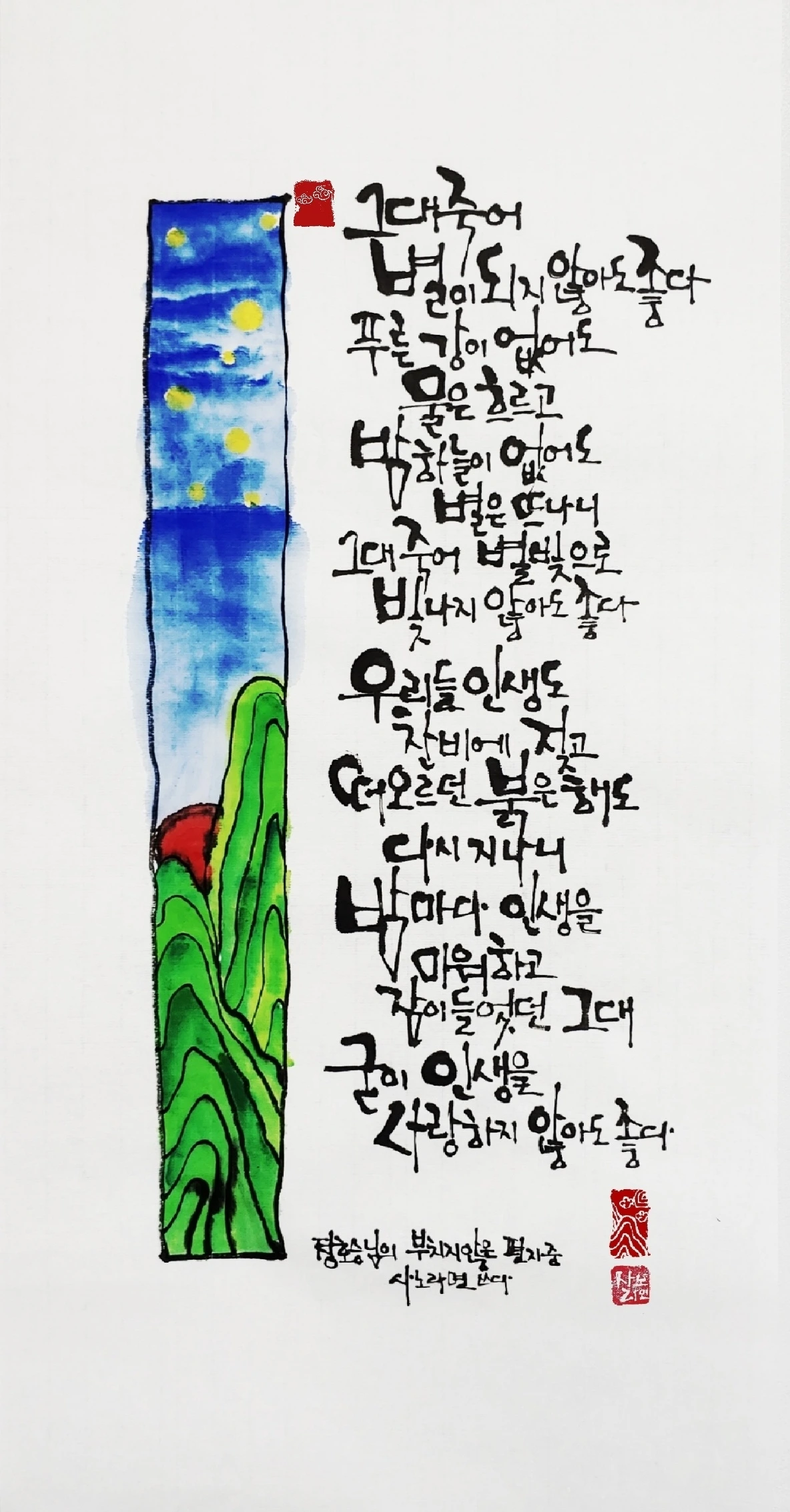 사노라면의 붓끝에 시를 묻혀 캘리 한 조각