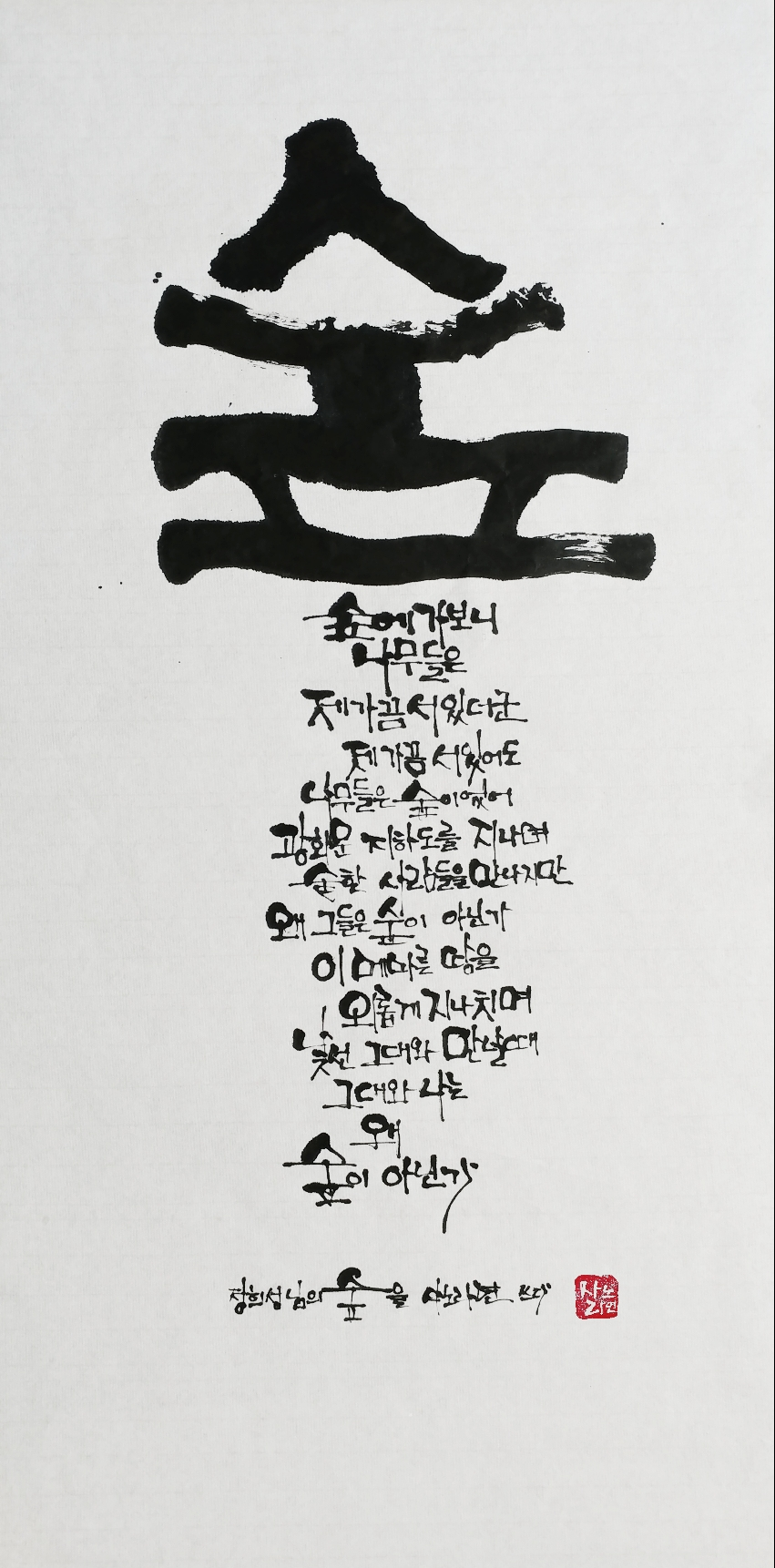 붓에 먹을 듬뿍 찍어 그저 흘러가는 대로 써 내려간 글자는 ‘숲’이었습니다