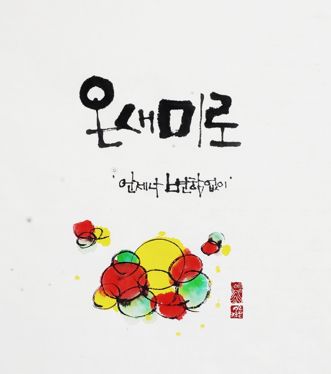 이 좋은 날, 예쁜 우리말 한 글자 적어보려 찾다가 제가 좋아하는 단어인 '온새미로'를 그려봅니다. 온새미로란 '언제나 변함없이'라는 의미를 갖은 우리말입니다. 세상에 변하지 않는 것이야 없지만, 그렇기에 더욱 더 변하지 않는 의미를 담은 예쁜 단어 하나 마음에 넣어다니면서, 온새미로 그린비, 온새미로 좋은 날, 온새미로 행복한 마음들이 함께 하면 좋겠습니다