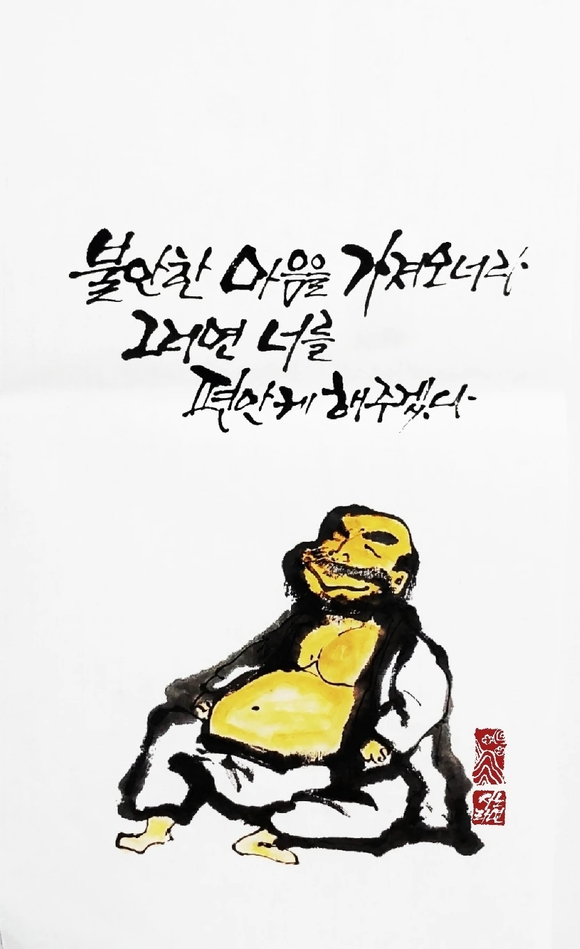 그러게요. 어쩌면 지금 이 순간에도 우린 보이지 않는 불안한 마음에 시달리고 있지는 않을지요. 좋은 시월의 어느 날. 편안한 미소를 건네주는 달마의 모습 한 번 보면서 불안한 마음은 훌훌 털고 마음의 평화가 함께 하길 기원해 봅니다 -사노라면
