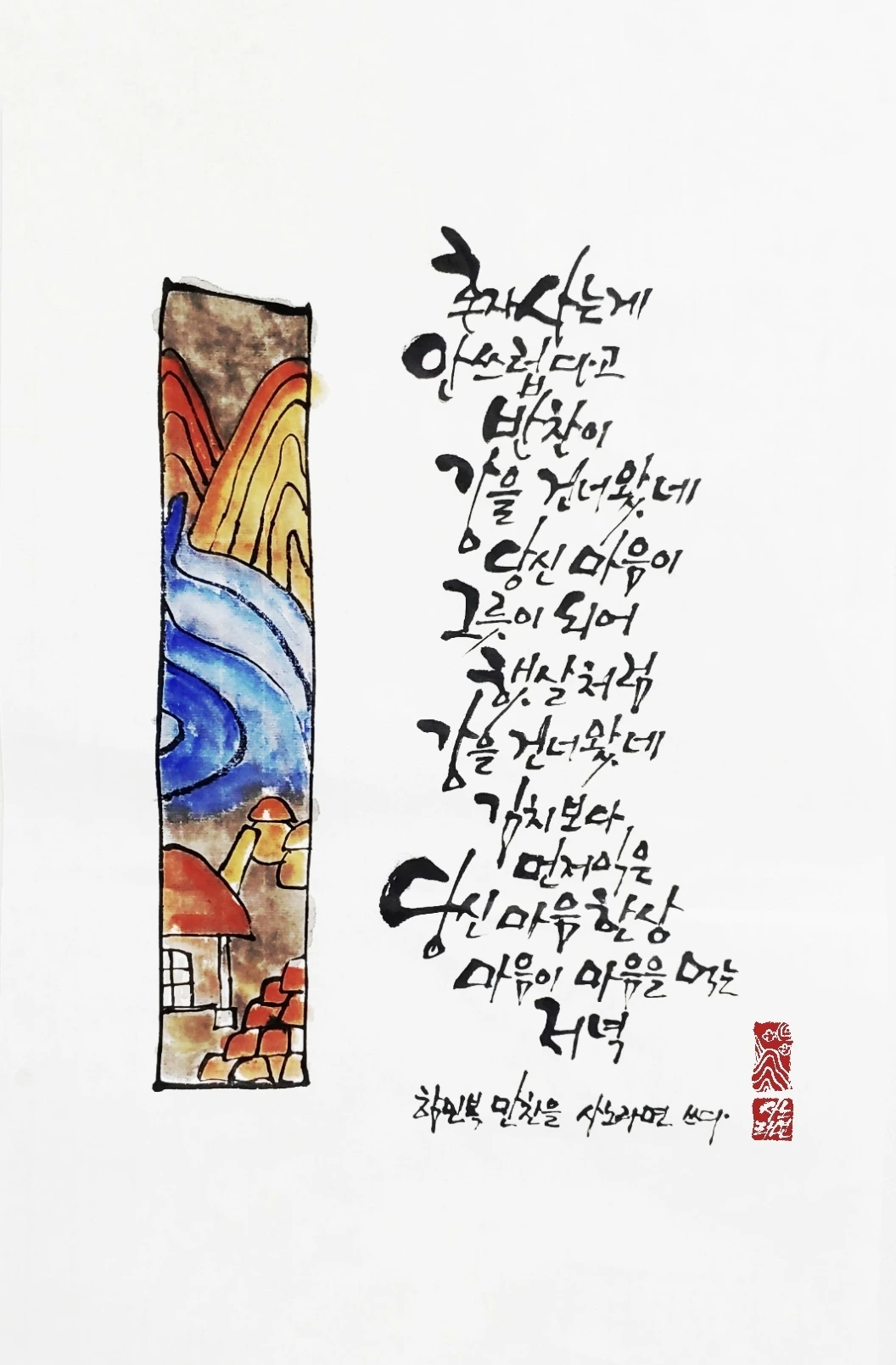 외로운 밥상에 마음 얹어 보내 온 김치 한 조각이어도 가득한 정이 더해져 만찬입니다. 시인의 말대로 김치보다 먼저 익은 그대의 마음입니다. 어쩌면 우리 민족은 이렇게 밥 한끼에 김치 한 줄에 마음을 담아 보내고 받는 그런 이들이었을겁니다.