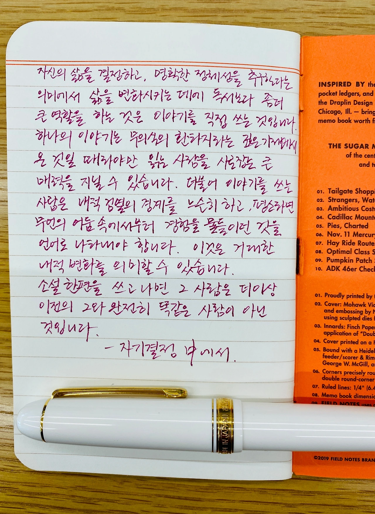 소설가인 저자는 '쓴다'는 행위가 가지고 있는 엄청난 가치에 대해서도 힘주어 이야기한다. 평생 소설 한 편을 쓸 수 없을 것 같지만, 하루에 조금씩이라도 내 생각의 편린들을 글로 옮겨 보는 일을 게을리하지 말아야겠다.