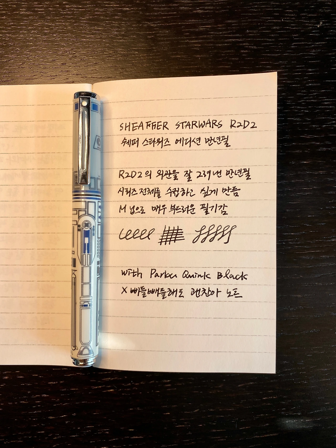 닙이 M인 만큼 부드러운 필기감을 가지고 있다. 정말 에디션 전체를 구입해서 컬렉션 하고 싶다는 생각이 드는 만년필이다. 스타워즈의 팬이고 만년필을 좋아한다면 꼭 하나는 가지고 있을 만하다.
