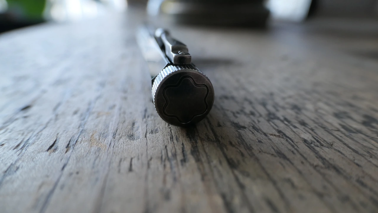 만년필 캡에는 몽블랑의 상징을 빈티지하게 음각으로 새겨 넣었다. 전체적으로 고대 유산을 발굴한 느낌의 고급스러운 빈티지함을 살렸다.