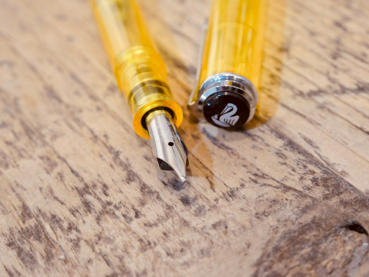 만년필 배럴 자체에 잉크를 저장하는 방식인 피스톤 필러 방식을 쓰고 있으며(노란색 형광잉크가 배럴에 담기면 진짜 이쁘다), 만년필 닙(Nib)도 나사(스크류)방식으로 되어 있어 쉽게 교환하고 세척할 수 있도록 되어 있다. 딱 펠리칸 만년필 스타일이다. 하이라이트 만년필답게 매우 굵은 BB(double broad) 닙을 장착하고 있다.