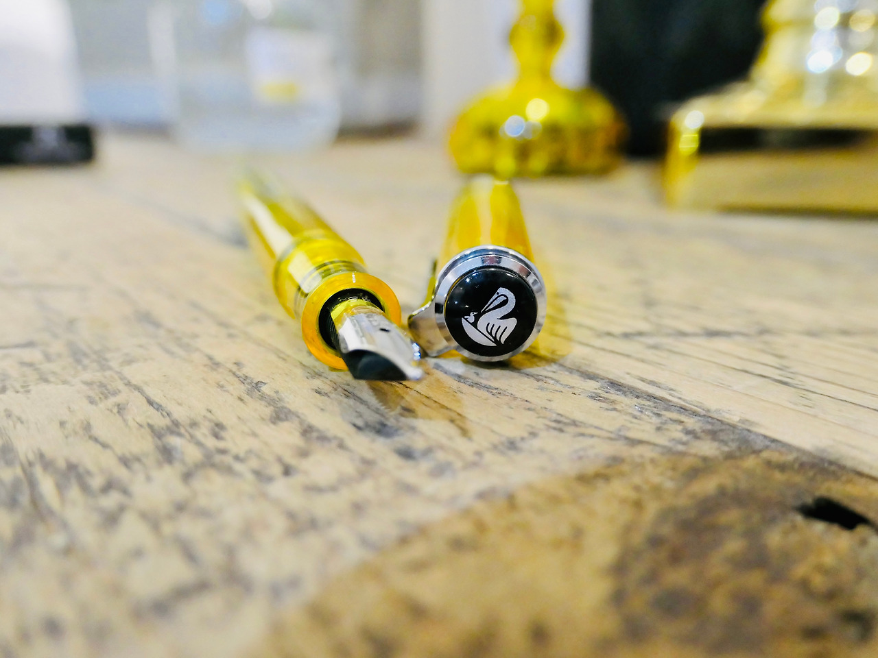 포장지를 펼치면, 노란색 만년필과 노란색 하이라이트 잉크가 참 이쁘게도 담아져 있다. 요즘 나오는 형광펜은 색깔이 다양해졌지만, 뭐니 뭐니 해도 형광펜의 대표색은 노란색이다.