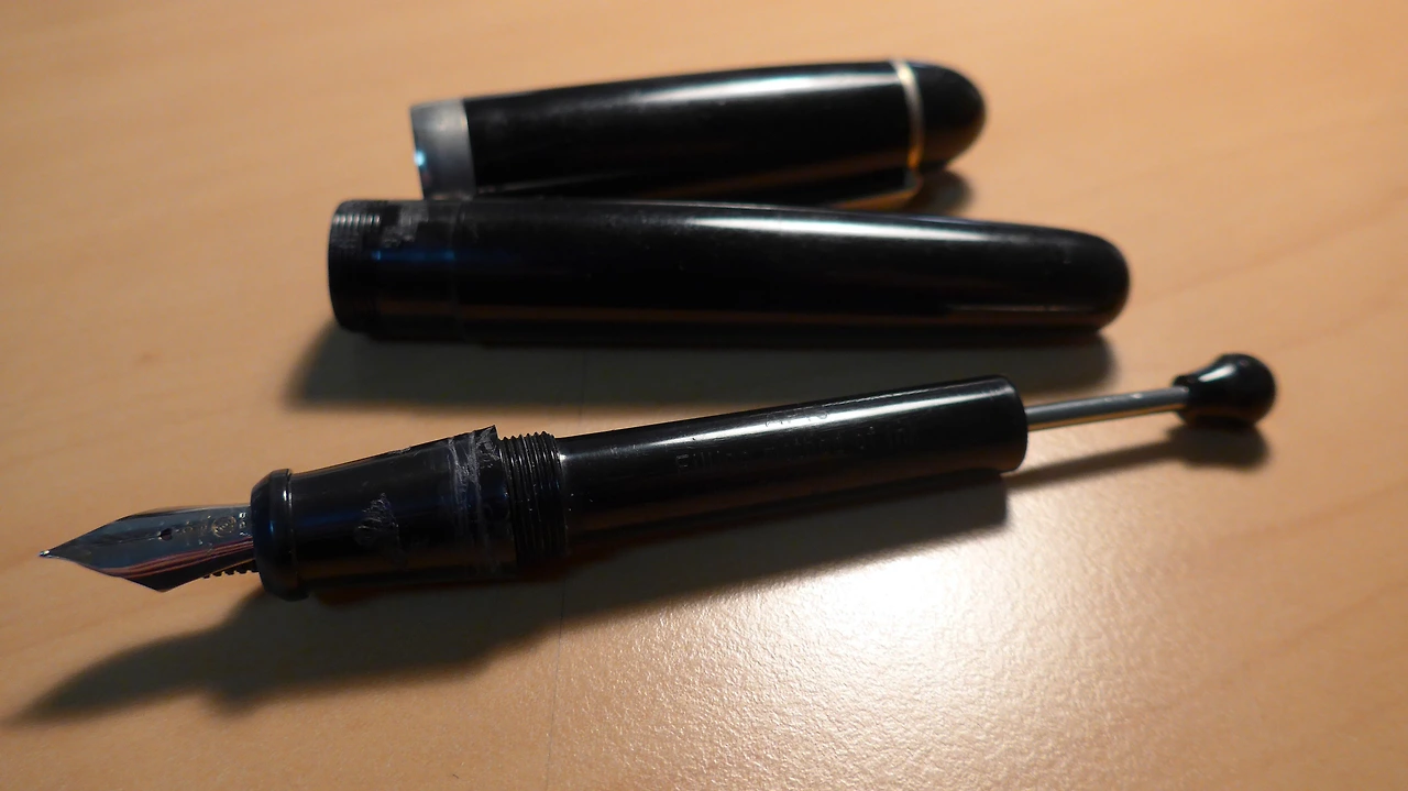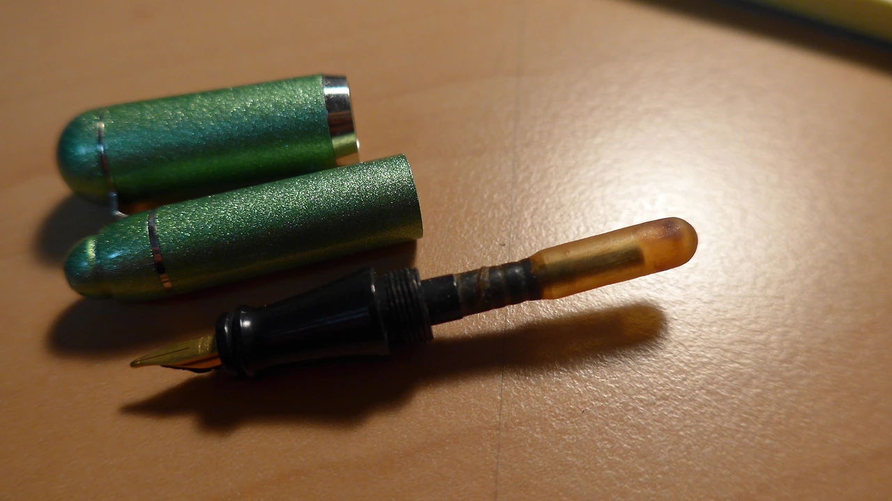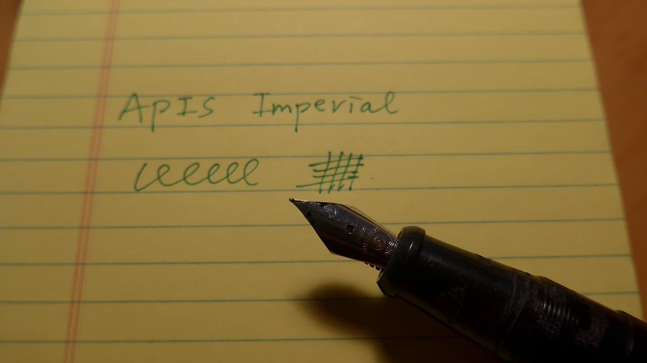 전체적으로 투박하다는 느낌을 줍니다. 하지만 아피스 임페리얼의 반전 매력은 펜촉의 구멍(nib hole)이 하트 모양이라는 것입니다. 잉크 주입은 바디에 붙어 있는 펌프로 이루어집니다. 세월의 흔적은 있지만 잉크 주입도 잘 되고 부드러운 필감을 가지고 있습니다. 굵기는 의외로 가늘게 나옵니다. 이것도 반전 매력입니다. EF에 가깝습니다.