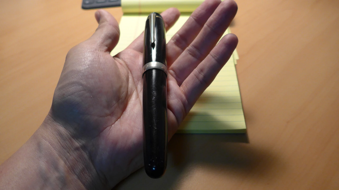 이 만년필은 아버지께서 주신 것입니다. 그만큼 세월이 묻어 있습니다. 정확히 몇 년도 생산되었는지 잘 모릅니다. 만년필 바디에는 잘 관리되지 못한 흔적과 세월이 묻어 있습니다. 먼저 크기부터 한번 보세요.