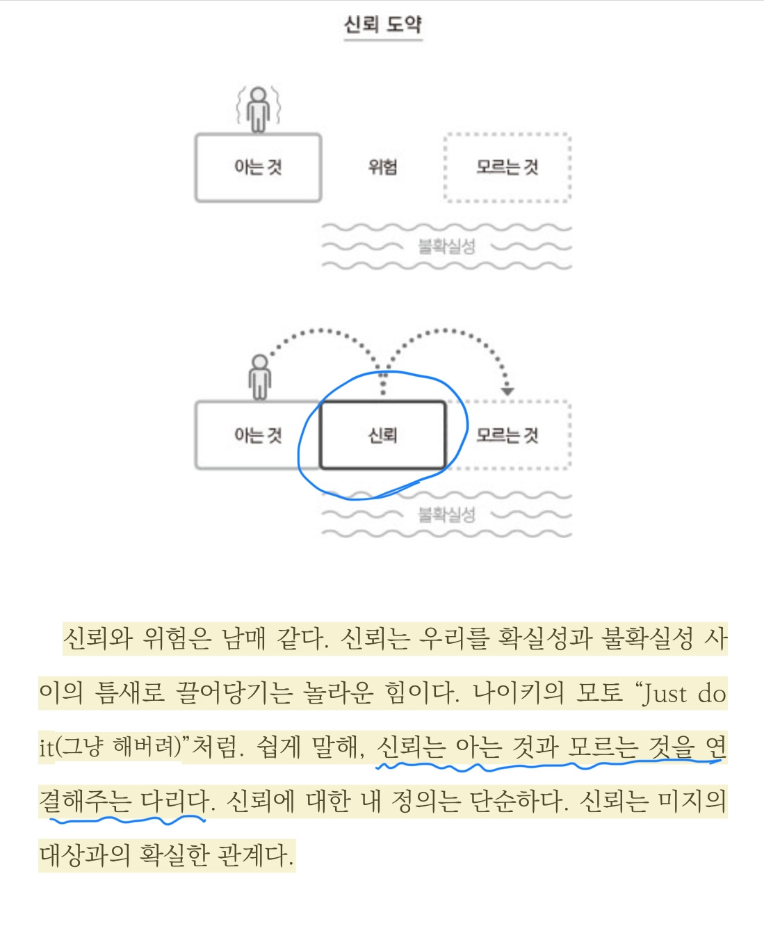 신뢰는 아는 것과 모르는 것을 연결한다.