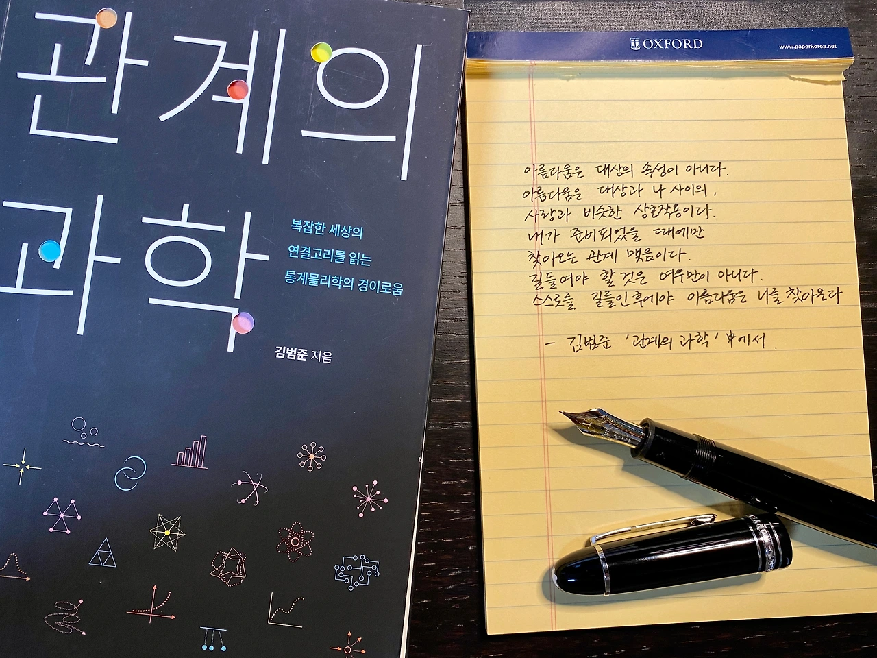 '따로따로 존재하는 여럿'이 연결되면 완전히 질적으로 다른 현상이 만들어진다. 그리고 사회는 '연결되어 함께하는 여럿'이 만들어낸다. 이러한 복잡계의 세상을 통계물리학자가 재밌게(?) 풀어쓴 '관계의 과학'(김범준, 2019, 동아시아)이라는 책이 있다. (내가 '재밌게'에 물음표를 붙인 이유는 몇 명의 사람들에게 추천했는데 별로 재밌어하지 않아서이다. 그 사람은 분명 생물을 선택한 문과생일 것이다)