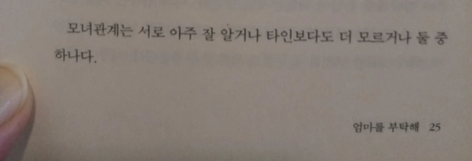 엄마에 대한 원망으로 가득 차 있던 10년 전쯤 그때 나의 상황을 너무나도 잘 아는 *정언니가 그 책을 선물해 주었다. 그 책은 책꽂이에 꽂힌 채로 그냥 있었다. 읽어볼 용기가 나지 않았다. 읽으면 더 힘들어질 것 같았던 엄마라는 단어가 꽉 잡고 있었다. 집에 놀러 온 6학년 조카는 서슴없이 그 책을 꺼내더니 읽기 시작했고, 나는 선심 쓰듯 조카에게 그 책을 가져도 좋다고 했다.