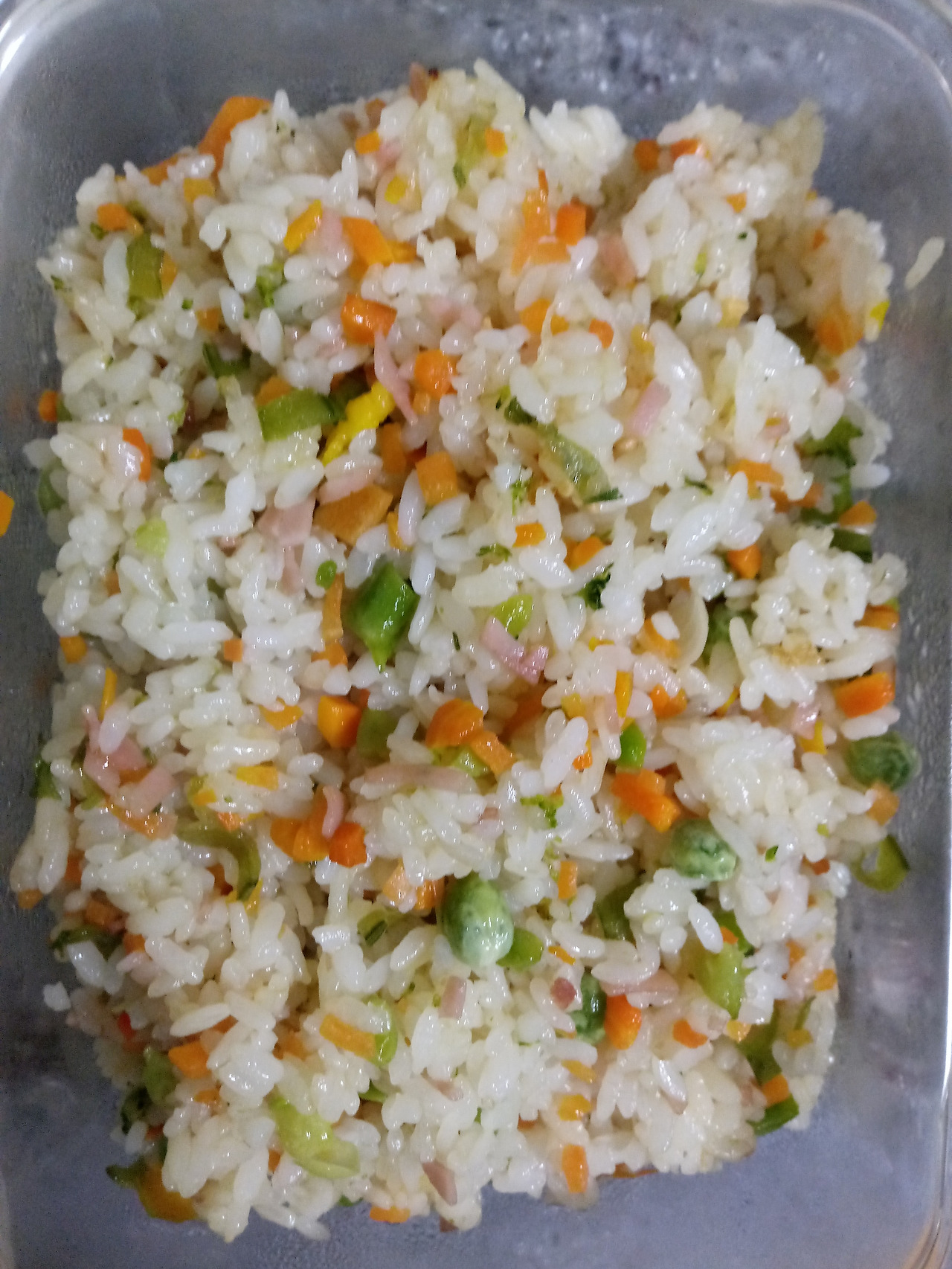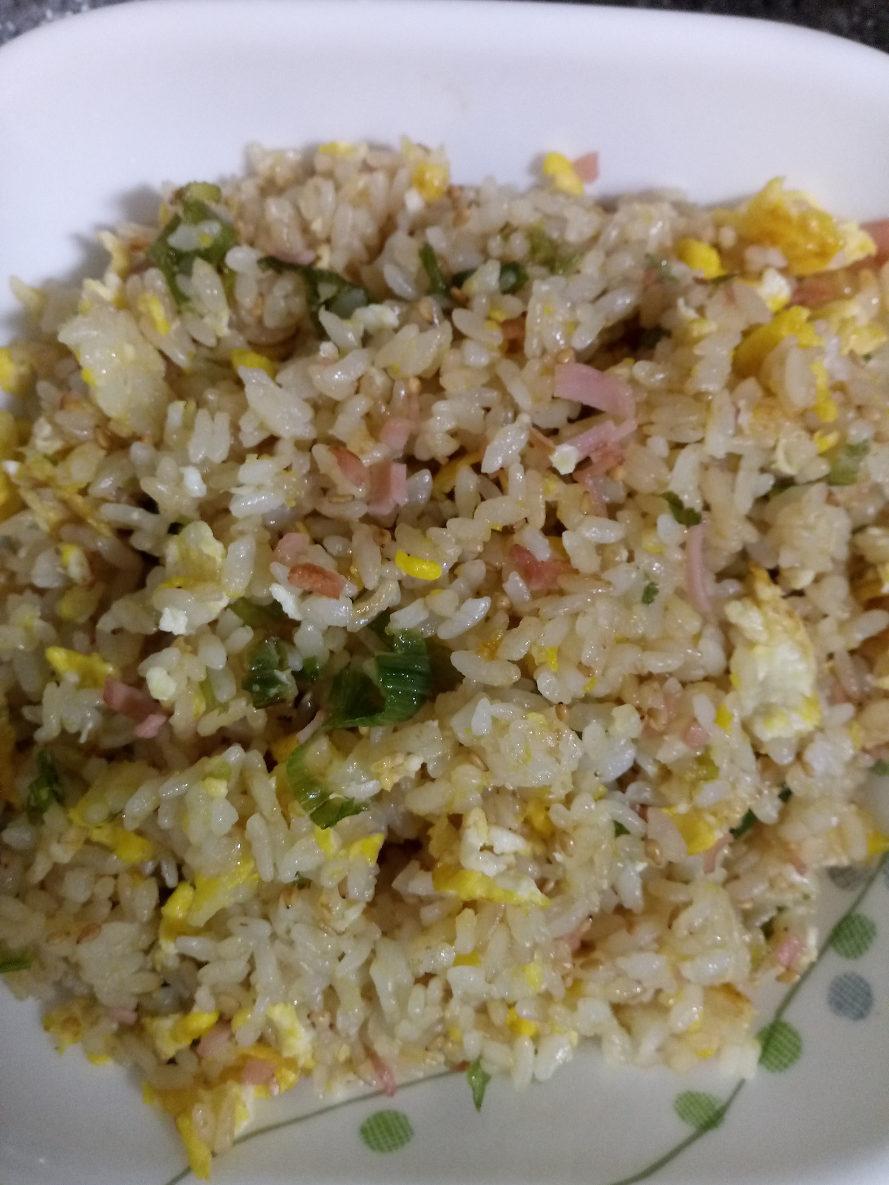 야채를 다지고 햄을 다져서 한 접시, 계란볶음밥 한 접시.