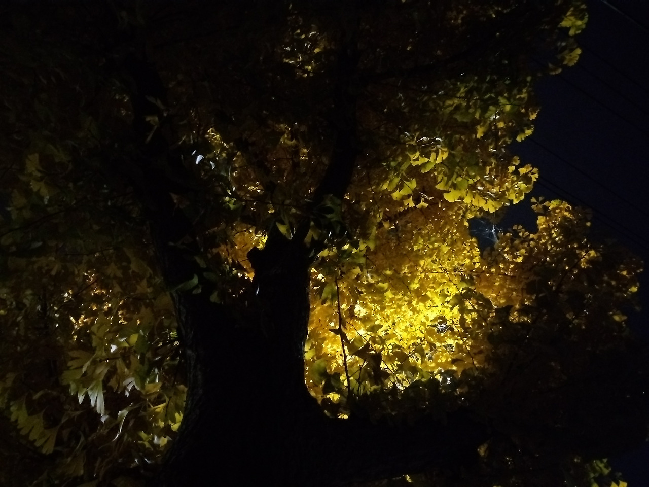 밖을 바라보니 하늘이 온통 노란 낙엽으로 덮여있습니다.