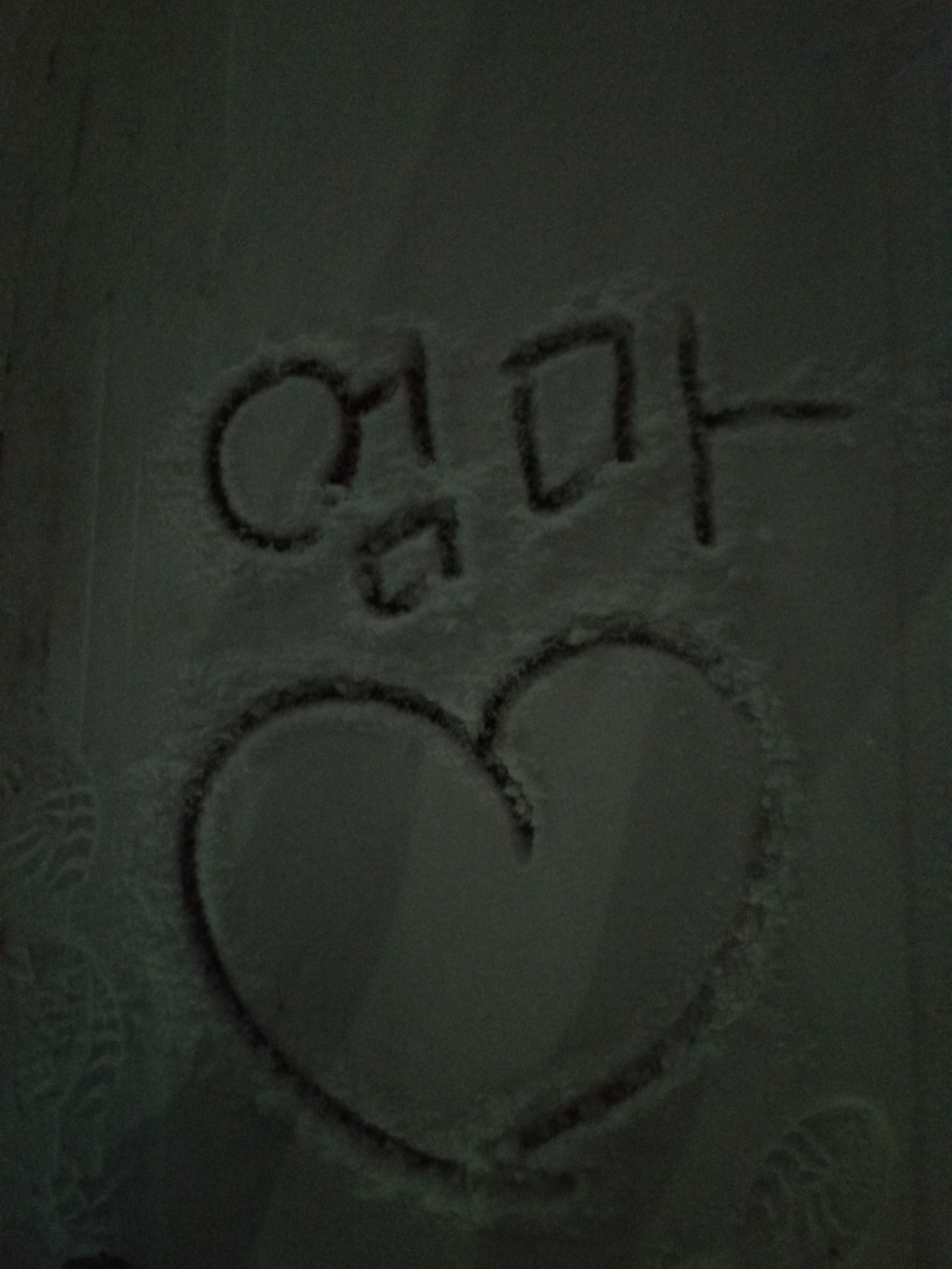 눈 위에 하트를 그려 엄마, 아빠께 사진을 찍어 보내드렸다.