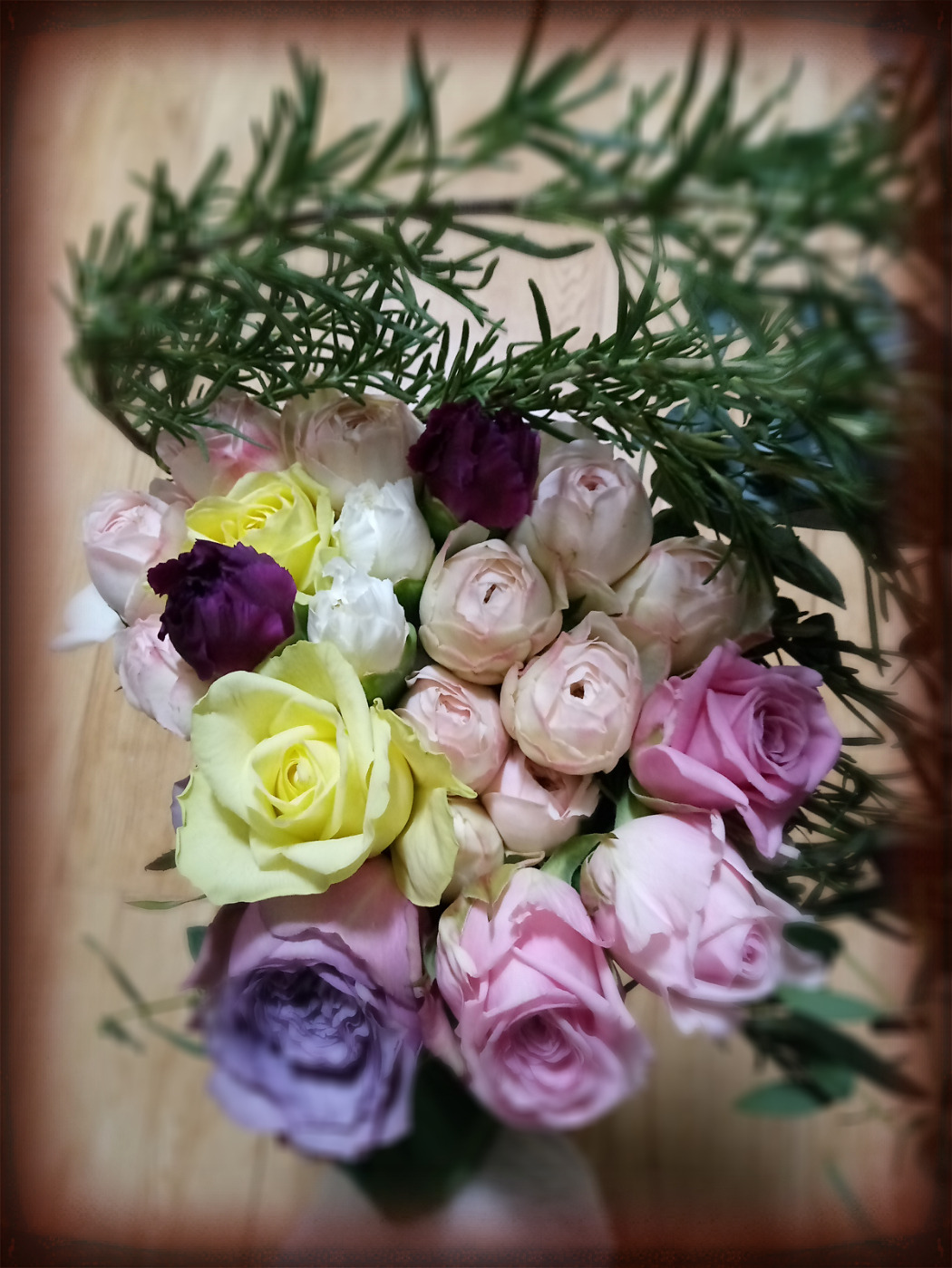 테이프를 떼니 로즈메리 허브향이 나며 꽃이 한가득 들어있었다.