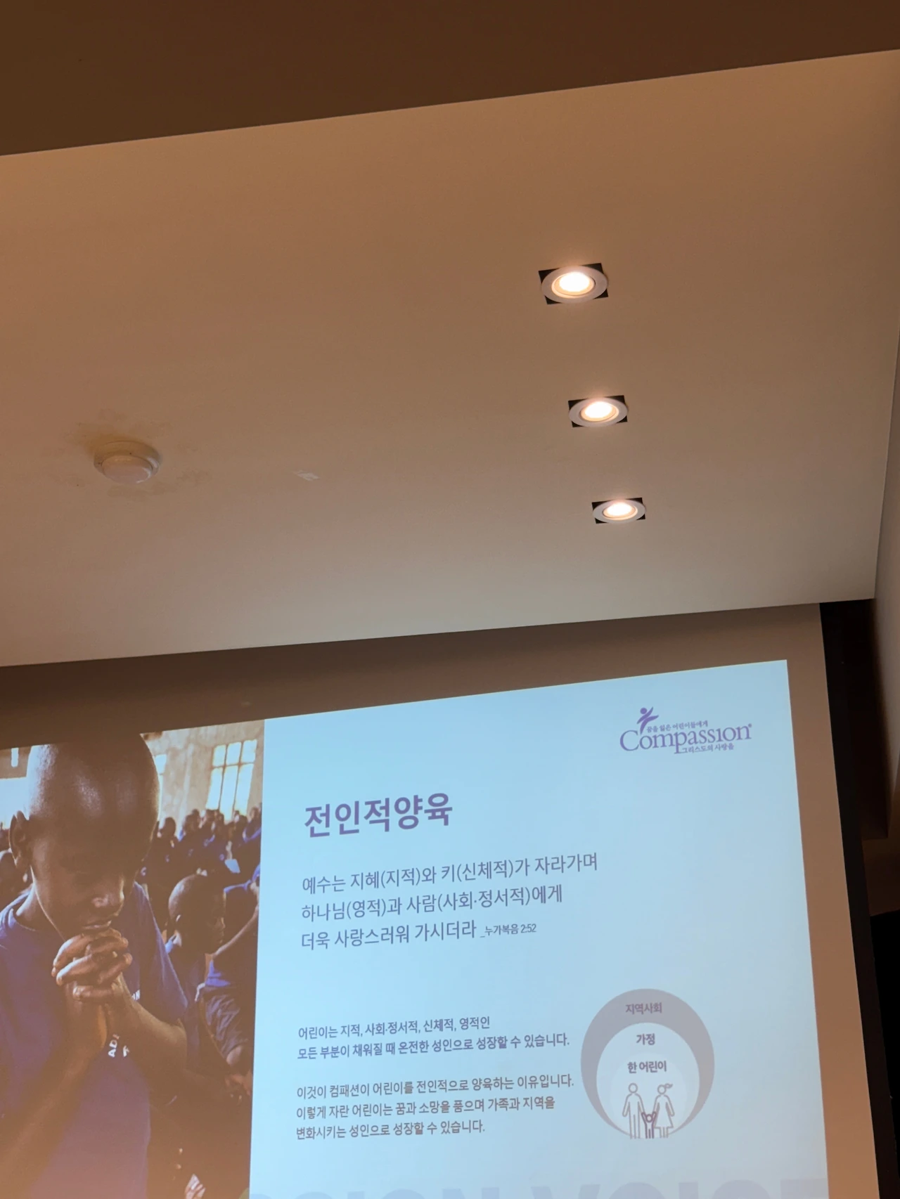 하나님의 마음은 소외된 사람들 가운데서도 아직 아무것도 감당할 준비가 되어 있지 않은 어린이들에게 향해 있다. 교회는 하나님의 형상을 담은 공동체이며, 컴패션은 지역 교회를 통해 꿈을 잃은 어린이들에게 그리스도의 사랑을 전하는 사역을 하고 있다.