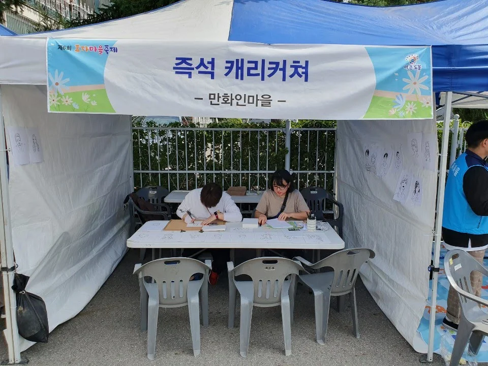 그렇게 첫 캐리커처를 나가게 되지만 저는 너무 떨리고 무서운 나머지 모든 손님을 옆에 계신 작가님께 돌립니다. 그리고 딱 두 분을 그려드리는데 그중 한 분은 우연히 교회 장로님을 만나서 아는 분이기 때문에 긴장하지 않고 그릴 수가 있었고 다른 한 분은 장로님이 모셔온 목사님이셔서 그렇게 두 분을 그려드리고 만원을 벌었습니다. 사실 천 원이었는데 장로님께서 떨지 말라고 만원이나 주신 거죠. (이때는 기관에서 돈 안 받았습니다)
